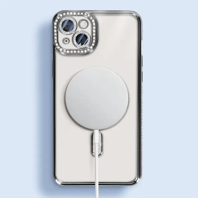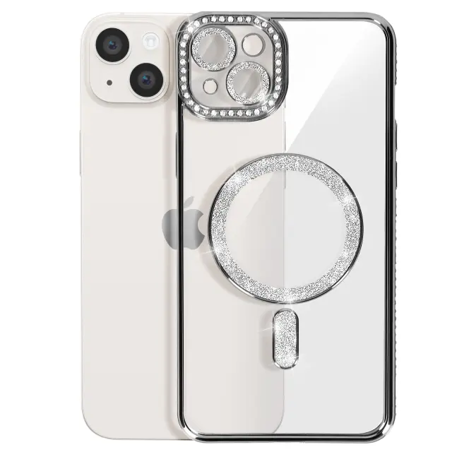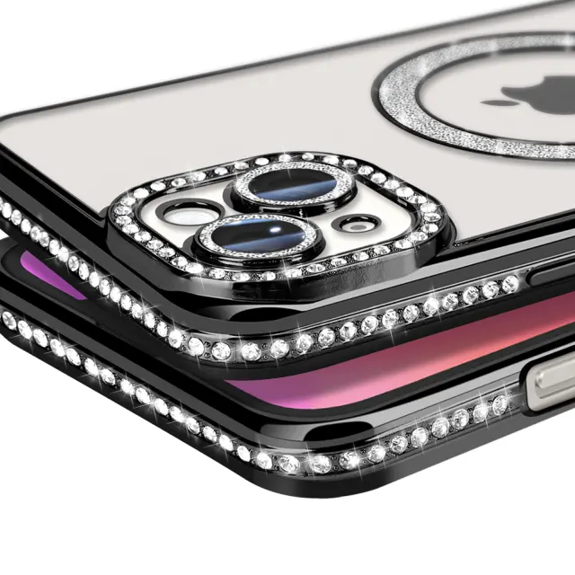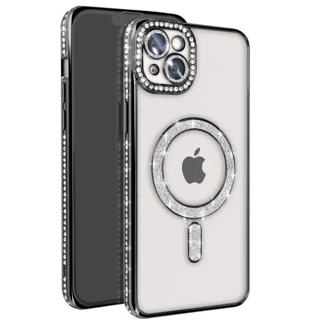 Diamantno ohišje za iPhone 14 Plus MagSafe Obris Strass, Črna