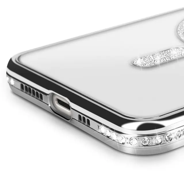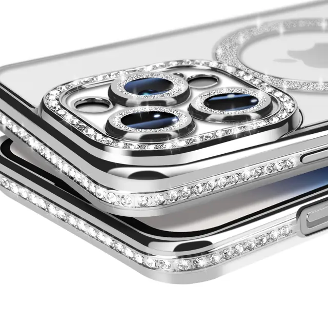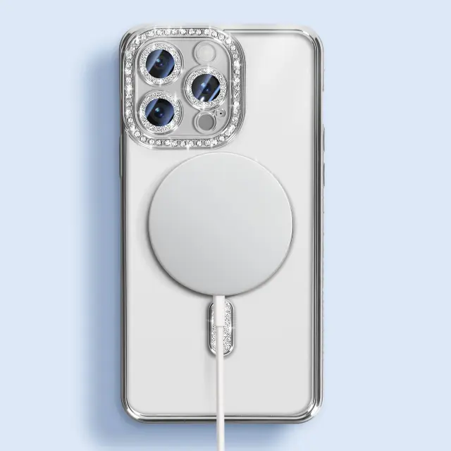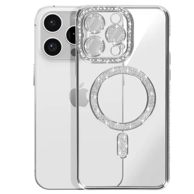 Diamantno ohišje za iPhone 14 Pro MagSafe Obris Strass, Srebrna