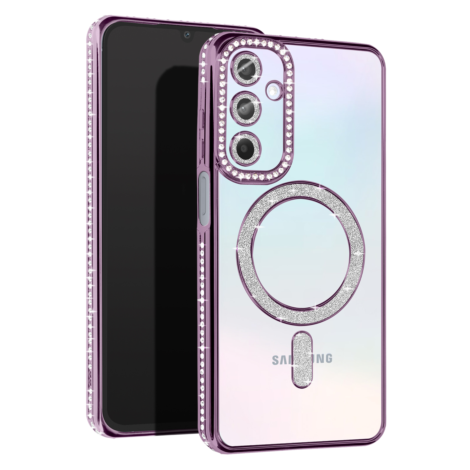 Diamantno ohišje za Samsung Galaxy A15 MagSafe Contour Strass, Vijolična
