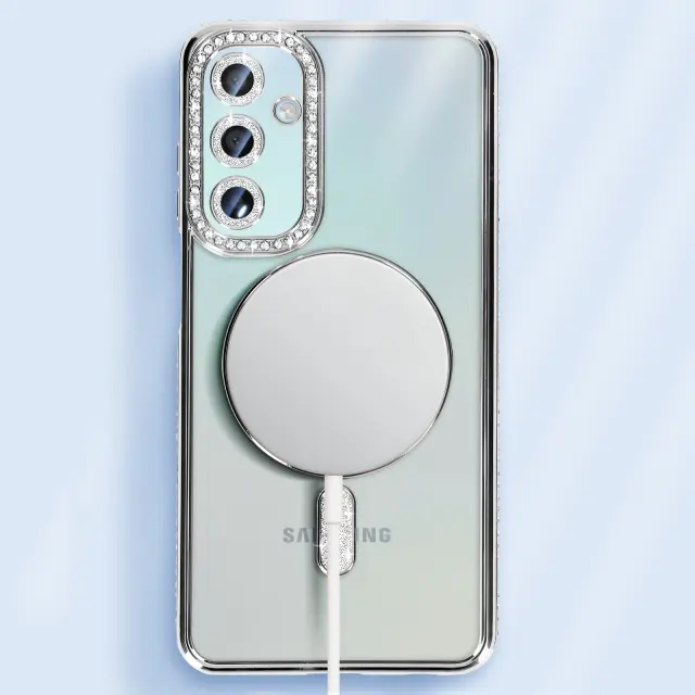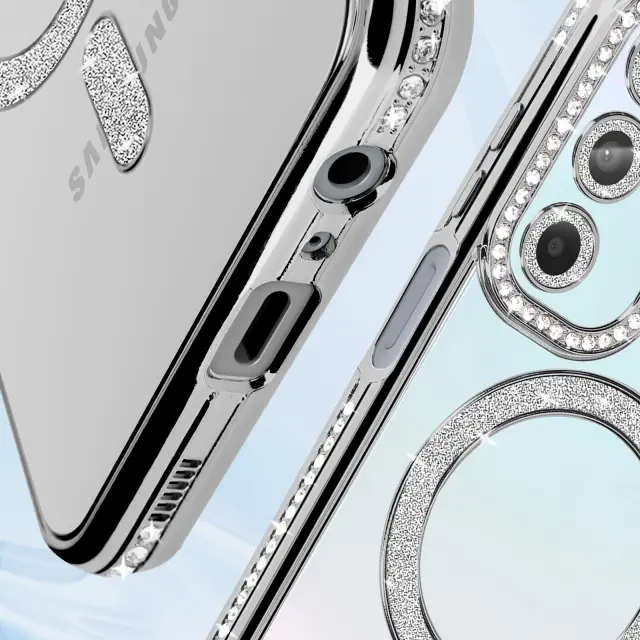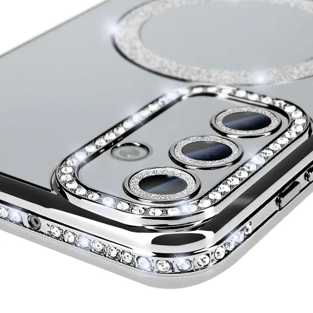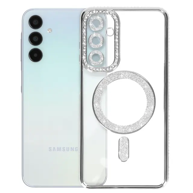Diamantno ohišje za Samsung Galaxy A15 MagSafe Contour Strass, Srebrna