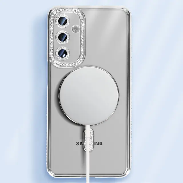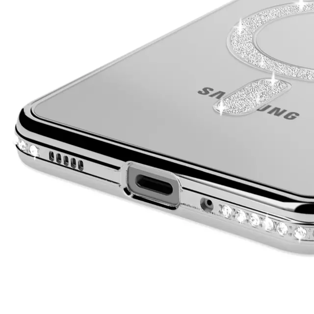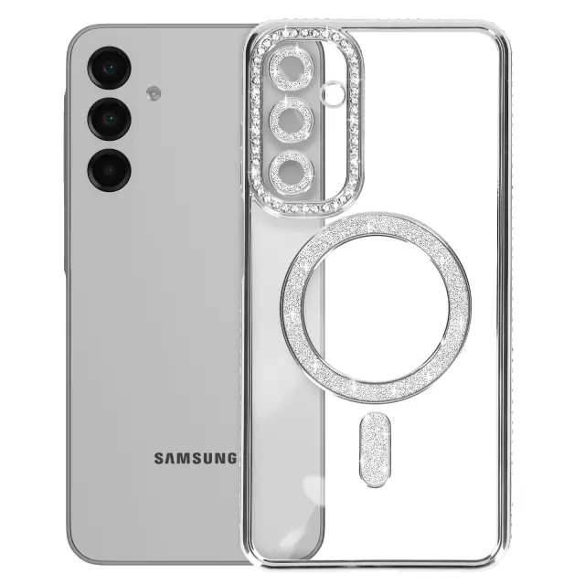 Diamantno ohišje za Samsung Galaxy A16 MagSafe Obris Strass, Srebrna