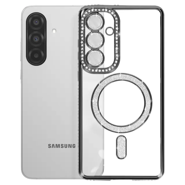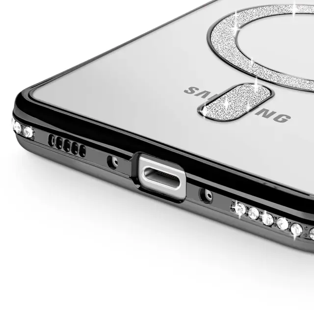 Diamantno ohišje za Samsung Galaxy A36 MagSafe Obris Strass, Črna