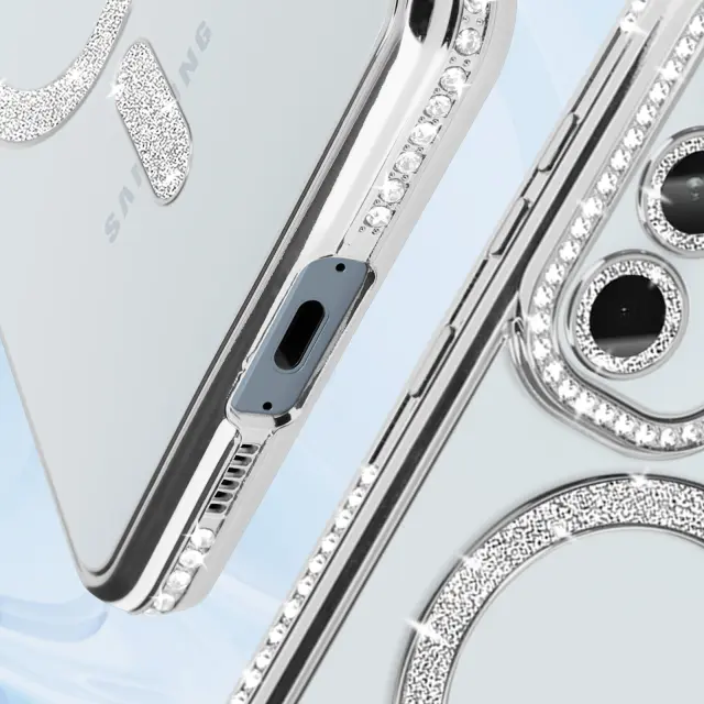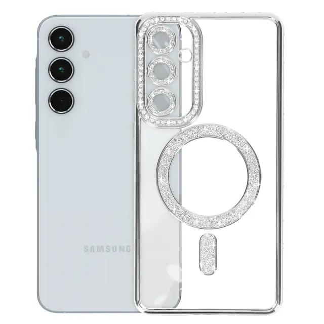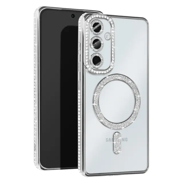 Diamantno ohišje za Samsung Galaxy A55 MagSafe Contour Strass, Srebrna