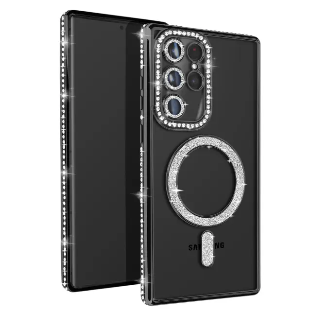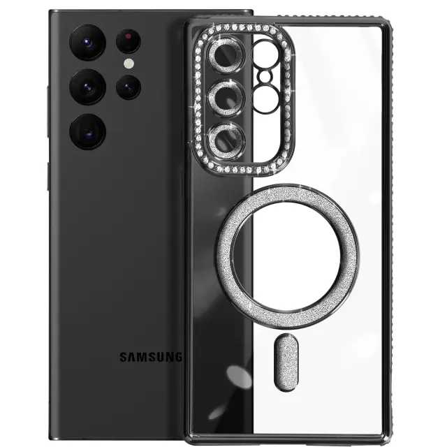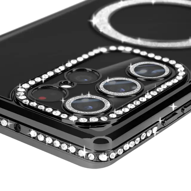 Diamantno ohišje za Samsung Galaxy S22 Ultra MagSafe Contour Strass, Črna