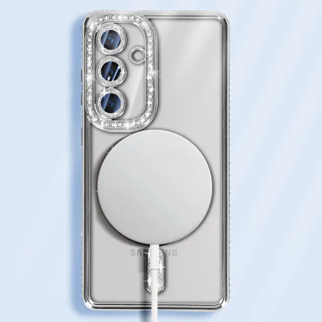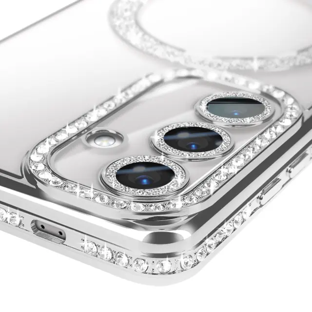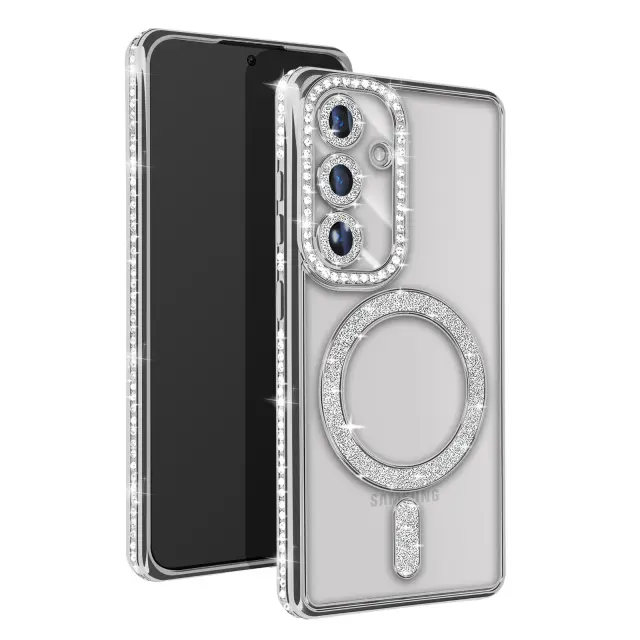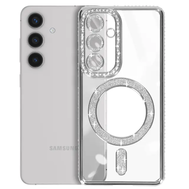 Diamantno ohišje za Samsung Galaxy S24 Plus MagSafe Contour Strass, Srebrna