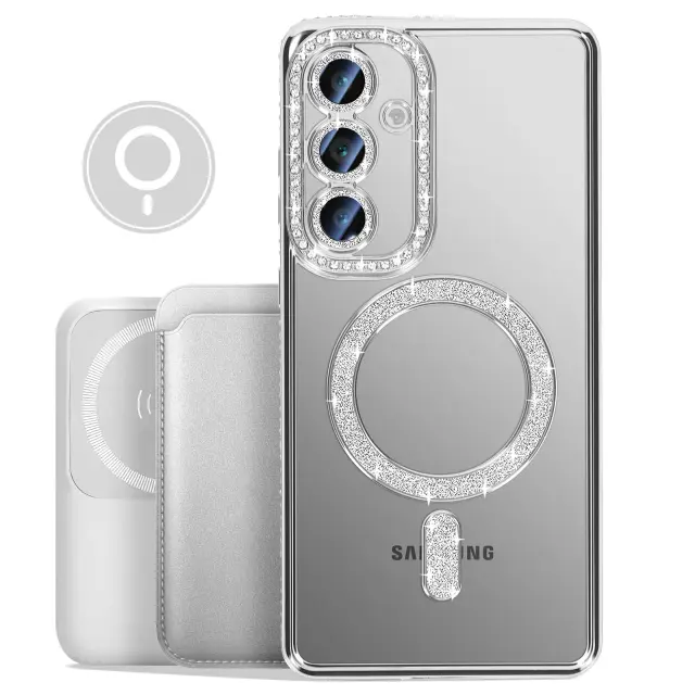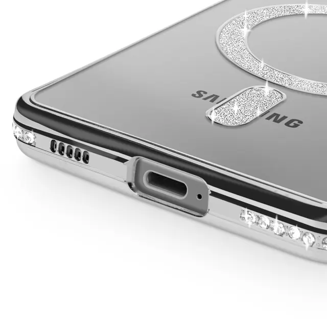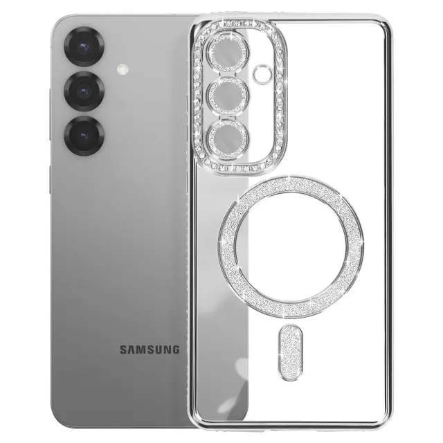 Diamantno ohišje za Samsung Galaxy S25 MagSafe Obris Strass, Srebrna