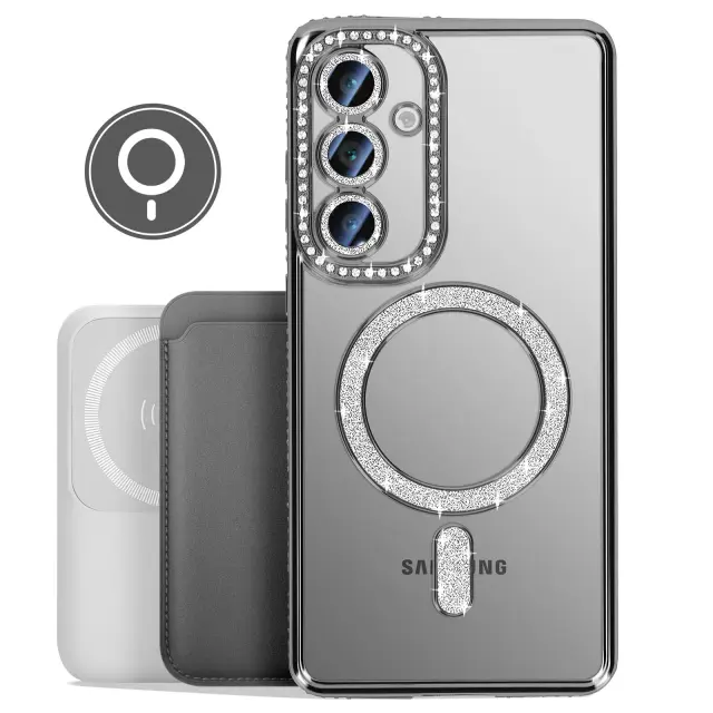 Diamantno ohišje za Samsung Galaxy S25 Plus MagSafe Obris Strass, Črna