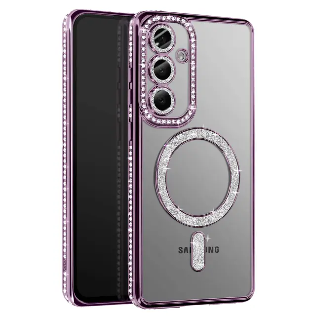 Diamantno ohišje za Samsung Galaxy S25 Plus MagSafe Obris Strass, Vijolična