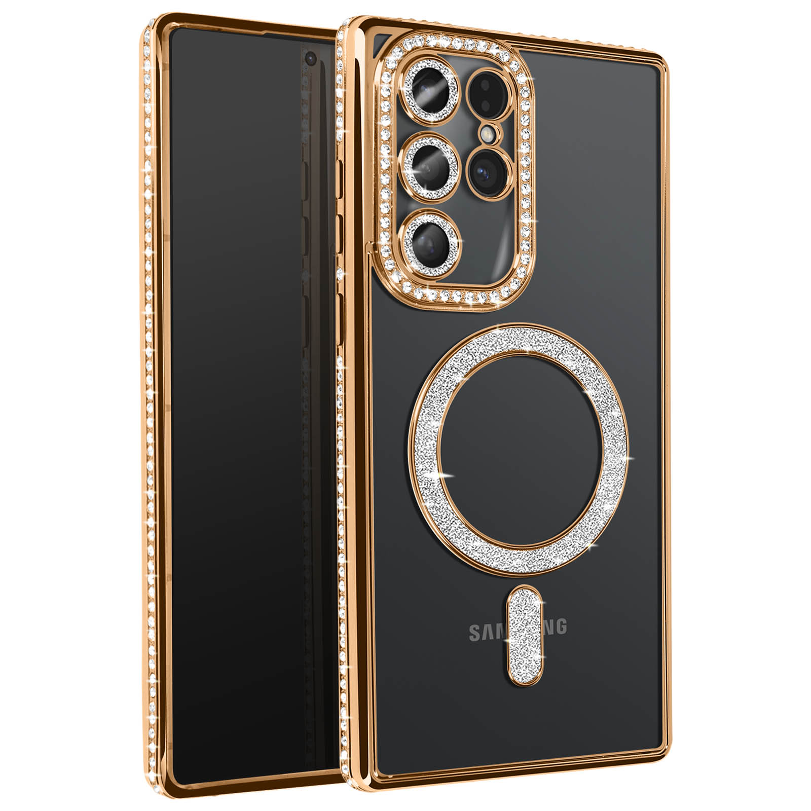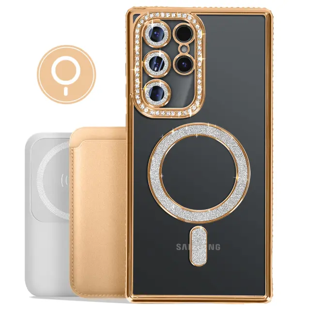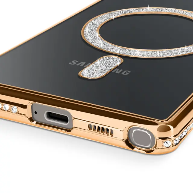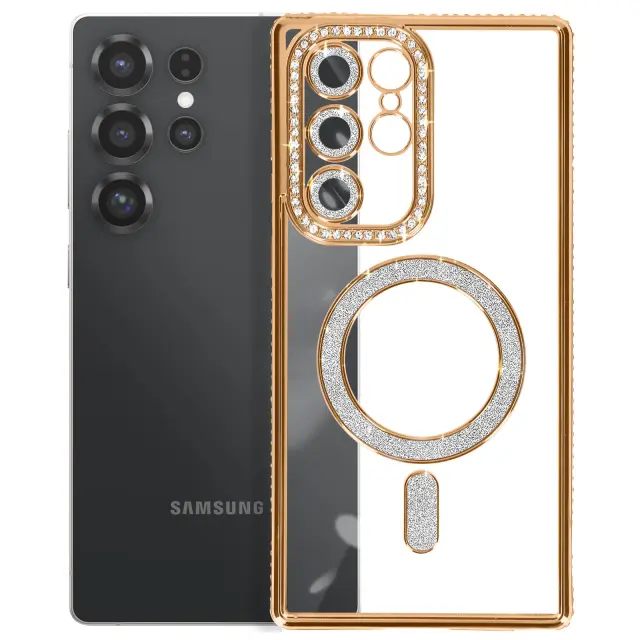 Diamantno ohišje za Samsung Galaxy S25 Ultra MagSafe Obris Strass, Zlata
