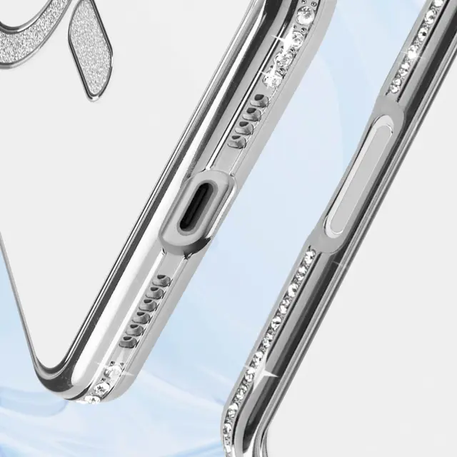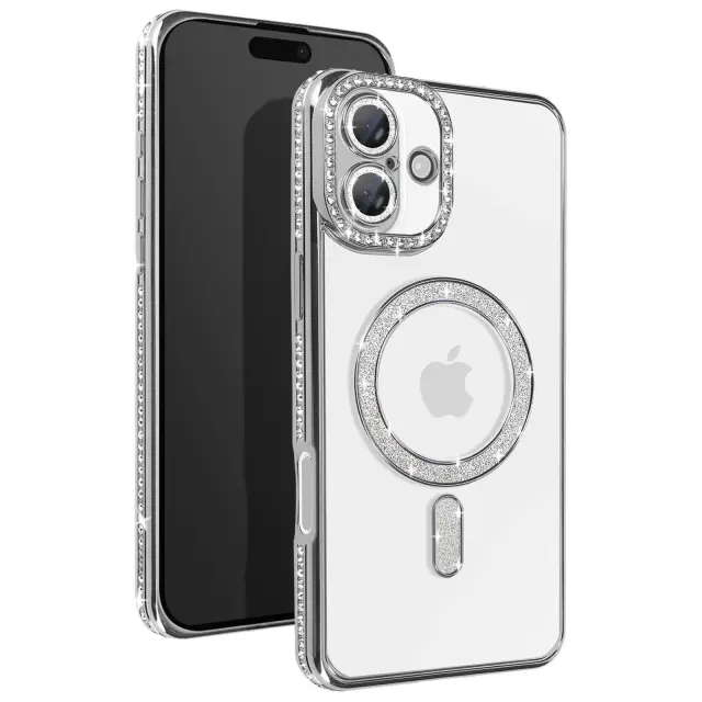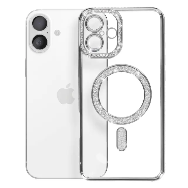 Diamantno ohišje za telefon iiPhone 16 Zaščita MagSafe Contour Strass, Srebrna