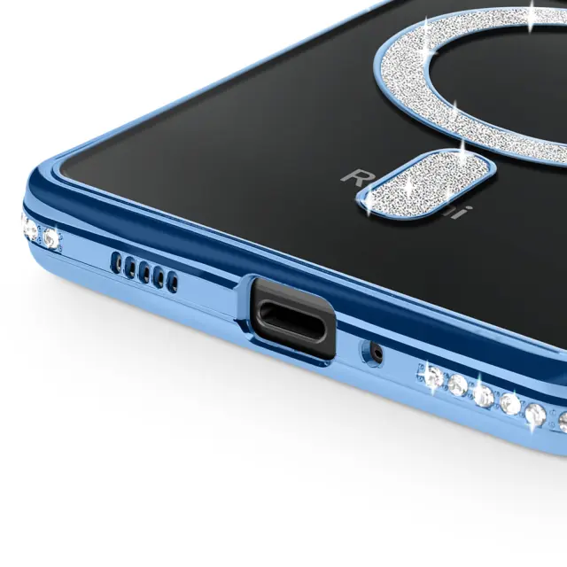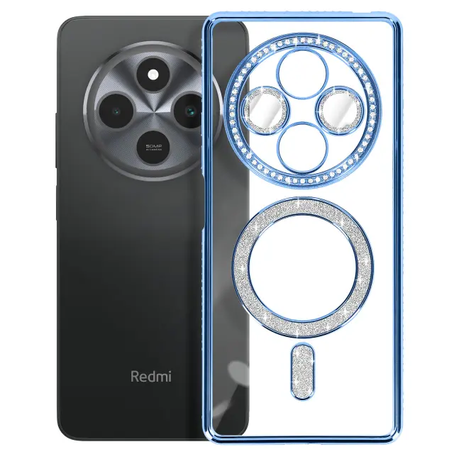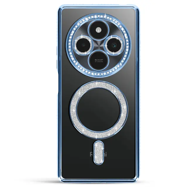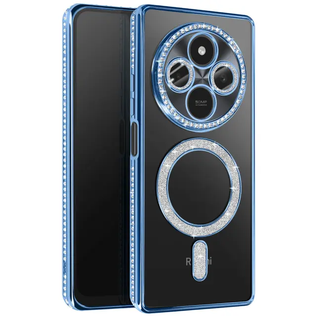 Diamantno ohišje za Xiaomi Redmi 14C MagSafe Obris Strass, Modra