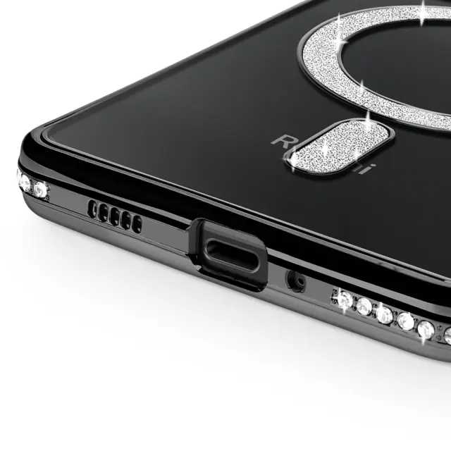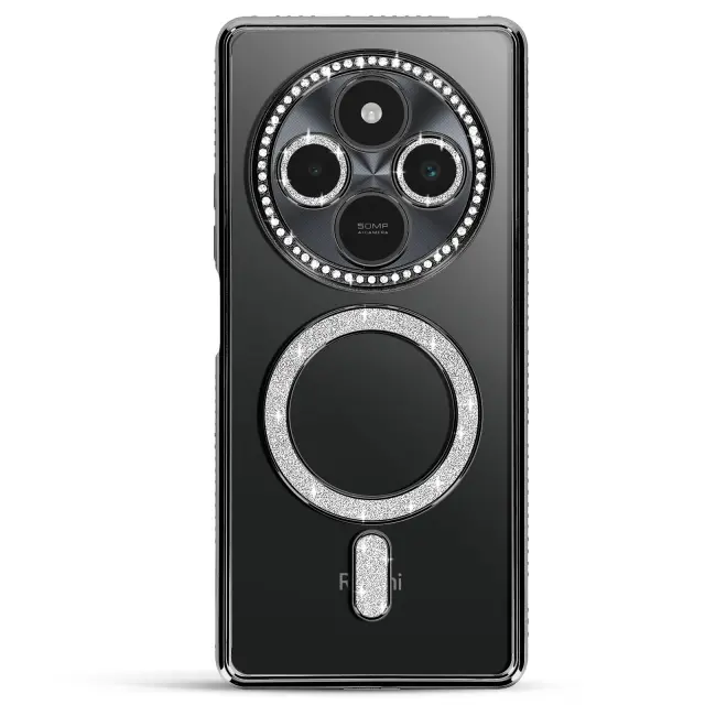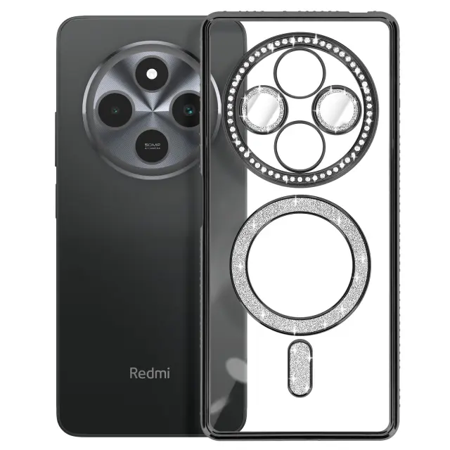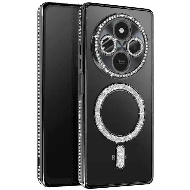 Diamantno ohišje za Xiaomi Redmi 14C MagSafe Obris Strass, Črna