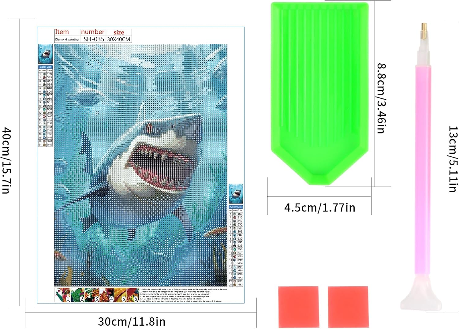 HAEPXYBY set za 5D diamantno slikanje predstavlja sodoben način ustvarjalnega izražanja, ki združuje sprostitev in ročne spretnosti. Ta komplet je zasnovan za izdelavo unikatne slike z motivom morskega psa, ki se izvaja s polaganjem kristalnih kroglic na vnaprej pripravljeno platno. Zaradi svoje zasnove je izdelek primeren tako za otroke kot za začetnike, ki želijo raziskati svet DIY hobijev. Končni izdelek služi kot privlačna dekoracija za popestritev stanovanjskih prostorov ali otroških sob.