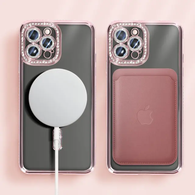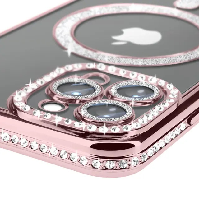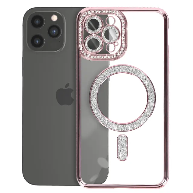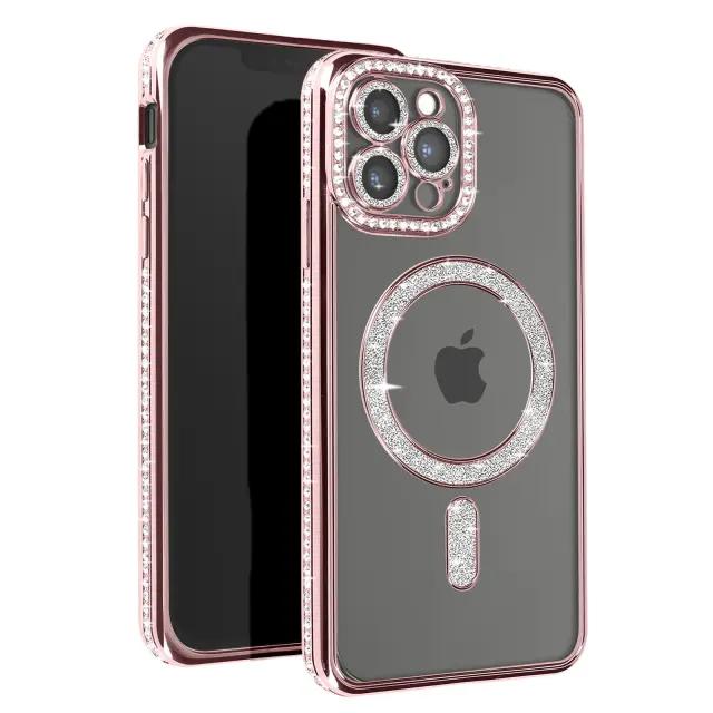 Diamond Case za iPhone 13 Pro Max Zaščita MagSafe Contour Strass, Šampanjec roza
