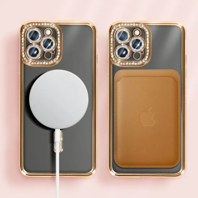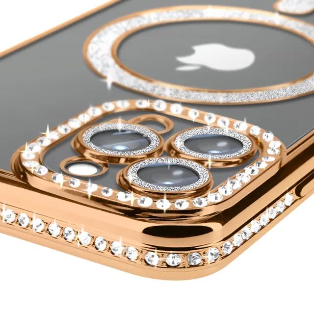 Diamond Case za iPhone 13 Pro Max Zaščita MagSafe Contour Strass, Zlata