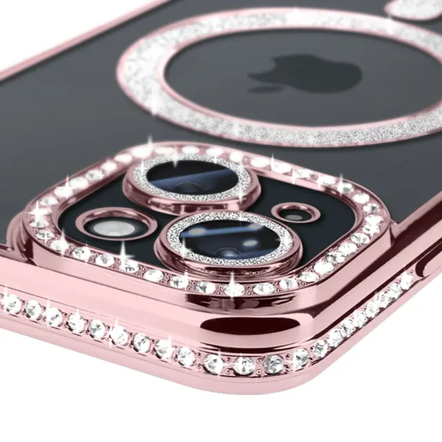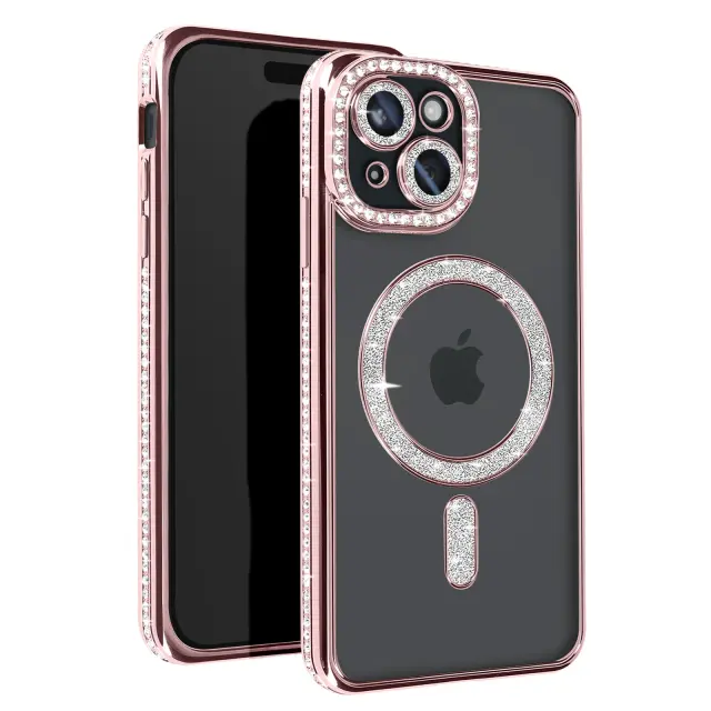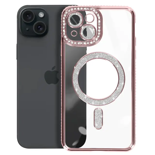 Diamond Case za iPhone 15 Zaščita MagSafe Contour Strass, Šampanjec roza