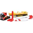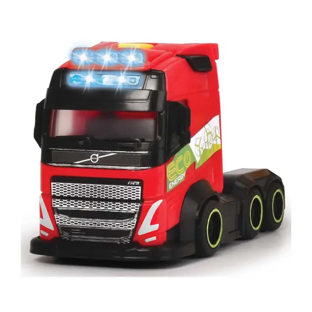 Ta model v merilu 1/14 natančno posnema težki tovornjak Volvo FH16.. Tovornjak je zaradi velike kabine in prikolice z varnostno sklopko namenjen prevozu vetrne turbine.. Tovornjaku je priložena vetrna turbina s snemljivimi lopaticami, s katero lahko vaš otrok ustvari poglobljen scenarij, ki je blizu resničnosti.. Mehanizem s prostimi kolesi zagotavlja nemoteno premikanje tovornjaka.