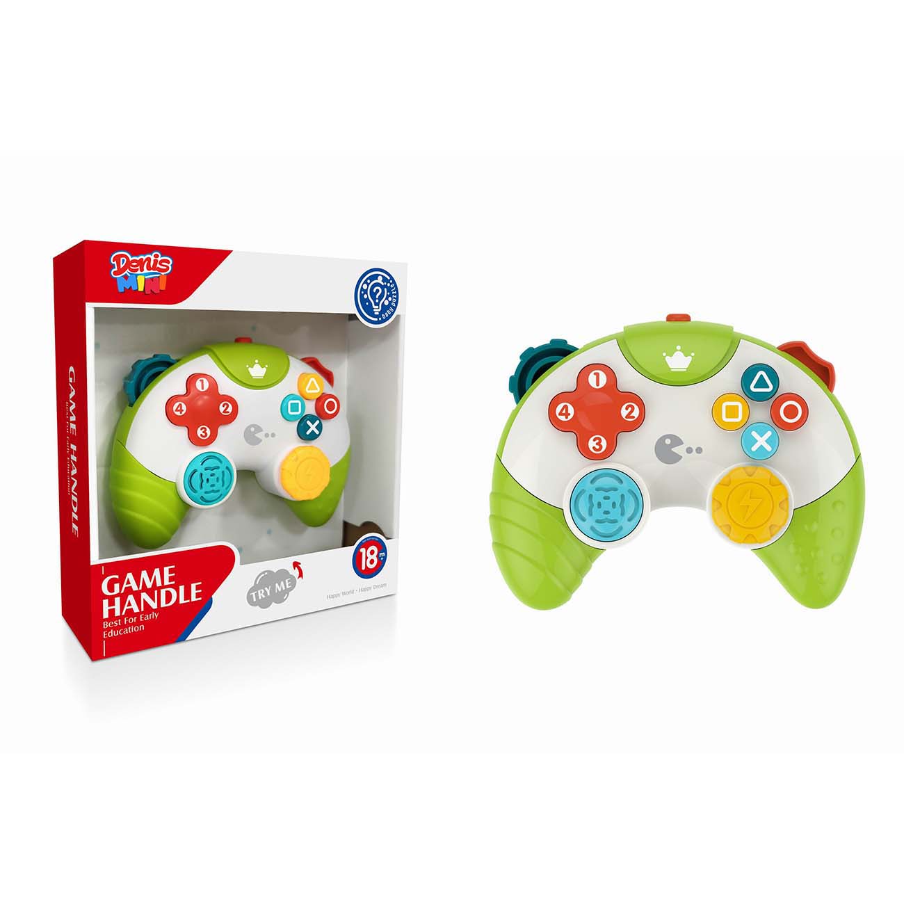 Didaktična igrača Joystick je ljubka, vesela igrača za dojenčke, ki razvija vse njihove čute. Razvija motorične sposobnosti prstov in rok, razvija logično razmišljanje, vid in sluh. Igrača oddaja svetlobo in različne zvoke ter melodije, odvisno od tega kateri gumb pritisne.