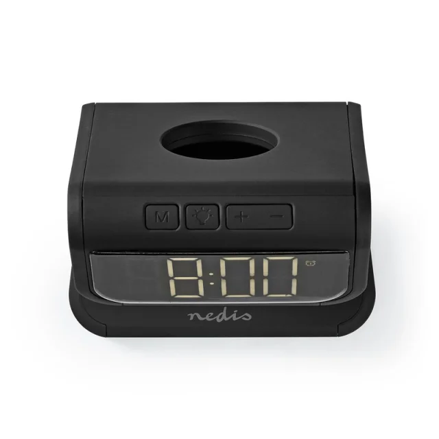 Digitalna budilka Nedis s funkcijo brezžičnega polnjenja, črna