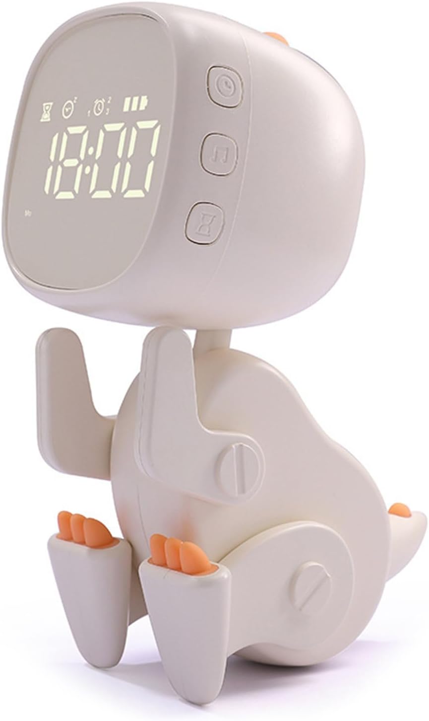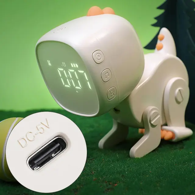 Dizajnirana budilka iz materiala Večnamenski dizajn, dinozavrska budilka, jutranja, kosila, večerna, časovna nočna lučka, nastavljivo polnjenje. Budilka primerna za spalnico, kampiranje na prostem, pisarno. Barva: bela, zelena, roza
