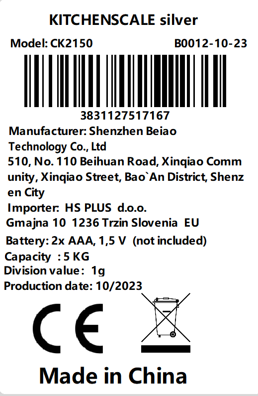 Digitalna Kuhinjska Tehtnica z velikim LCD Zaslonom in Visoko Natančnostjo do 1 Kg in Funkcijo Tara | KITCHENSCALE