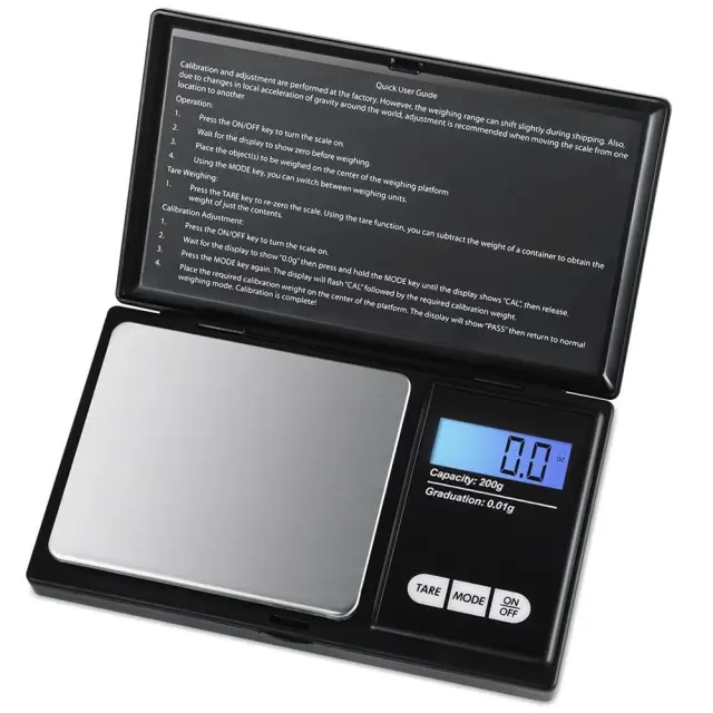 Naša digitalna žepna tehtnica je izdelana iz visokokakovostnih materialov, ki zagotavljajo dolgo življenjsko dobo. Poleg tega je enostavna za uporabo, saj ima intuitiven uporabniški vmesnik. Priložena je tudi navodila za uporabo, ki vam bodo pomagala hitro začeti z merjenjem.