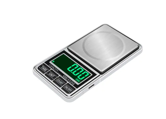 Visoka natančnost: Ta digitalna žepna tehtnica se ponaša z impresivno natančnostjo 0,01 g, kar zagotavlja natančne meritve tudi za najmanjše predmete, kot so nakit, dragi kamni in drugo.