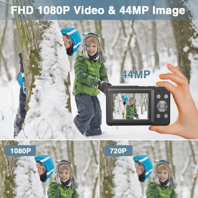 Digitalni fotoaparat 44 MP in 1080 P: ta fotoaparat ima zmogljivo ločljivost slike 44 MP in možnost snemanja videa 1080 P. To zagotavlja, da sta vsaka slika in videoposnetek, ki ga posnamete, podrobna in resnična, da ohranite svoje dragocene spomine na najboljši možni način.