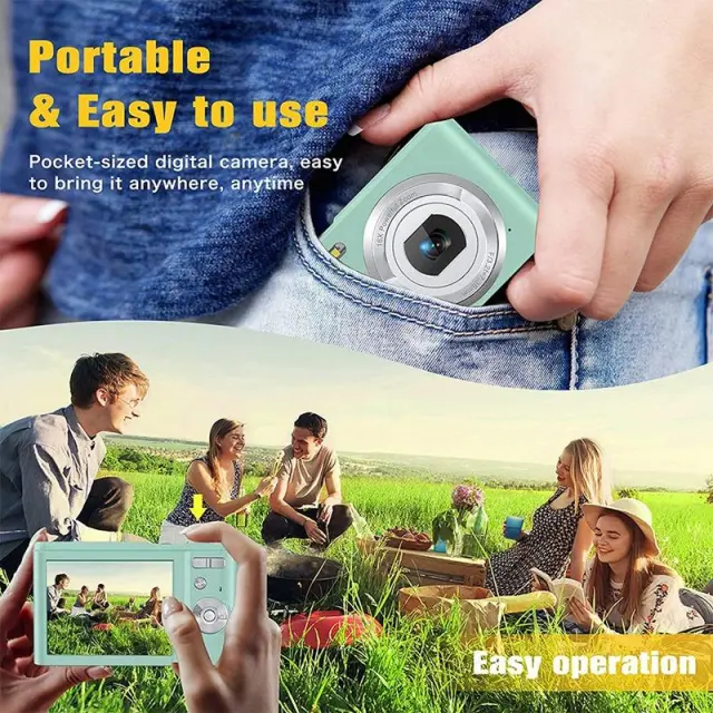 Majhen in enostaven za uporabo: Kompaktni fotoaparat je manjši od pametnega telefona in ga zlahka pospravite v žep, tako da lahko kadar koli in kjer koli posnamete visokokakovostne fotografije. Digitalni fotoaparat, enostaven za uporabo, za vse starosti.