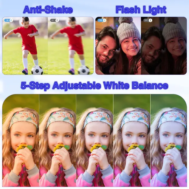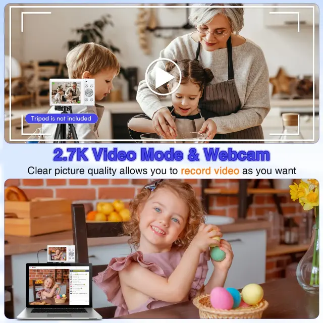 Digitalni fotoaparat z ločljivostjo 48 MP in 2,7 K: Ta fotoaparat ima zmogljivo ločljivost slike 48 MP in zmogljivost snemanja videa 2,7 K ter je opremljen z 2,88-palčnim zaslonom za enostavno gledanje. To zagotavlja, da sta vsaka slika in videoposnetek, ki ga posnamete, podrobna in resnična, da ohranite svoje dragocene spomine na najboljši možni način. Poleg tega je priložena 32 GB pomnilniška kartica, da lahko neposredno shranite svoje slike.
