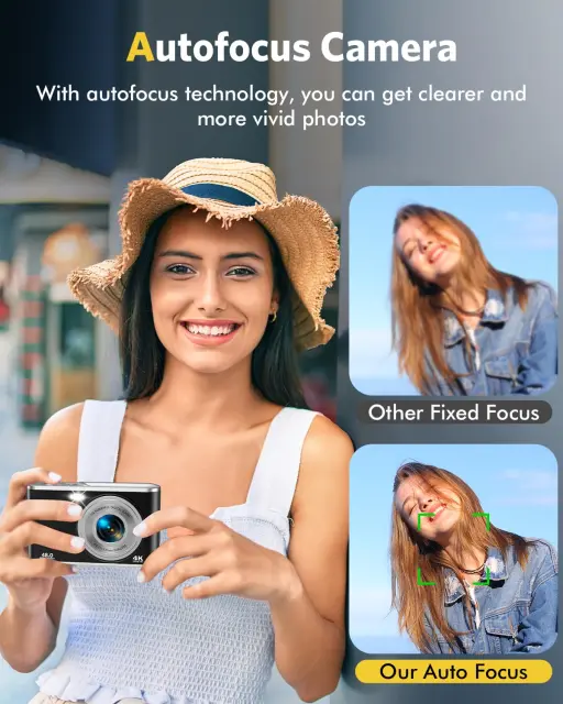 Digitalni fotoaparat z 48 milijoni slikovnih pik in 4K: fotoaparat zajema videoposnetke 4K in jasne slike pri 48 milijonih slikovnih pik, kar zagotavlja, da sta vsaka slika in videoposnetek, ki ga posnamete, podrobna in resnična. Poleg tega je kamera opremljena z 2,8-palčnim zaslonom za enostavno gledanje.