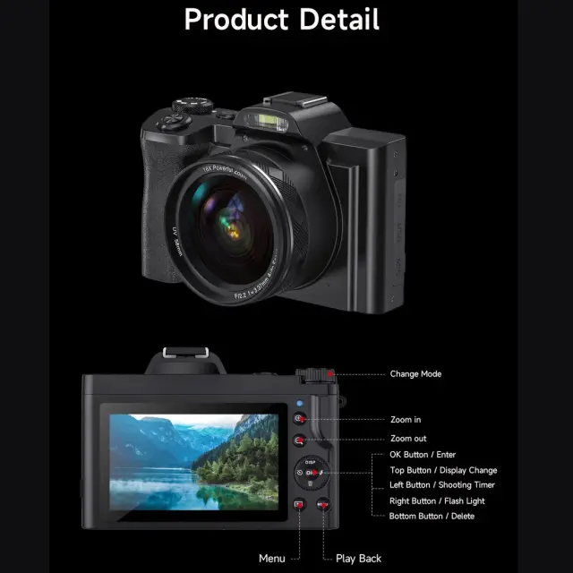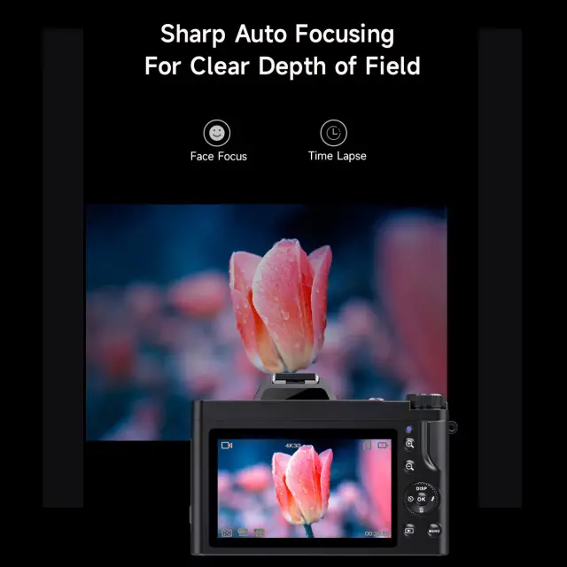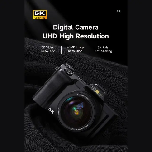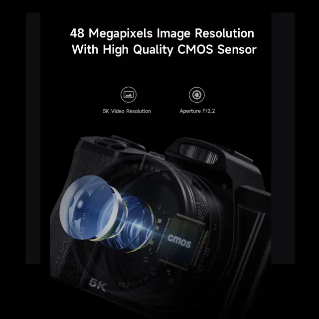 Digitalni fotoaparat z ločljivostjo 48 MP in 5K: ta fotoaparat pomaga pri zajemanju videoposnetkov 5K in super jasnih slik 48 MP, opremljen s 3,5-palčnim zaslonom za enostavno gledanje. Zagotavlja, da je vsak posnetek in videoposnetek, ki ga posnamete, podroben in resničen ter ohranja vaše dragocene spomine v živahni jasnosti.