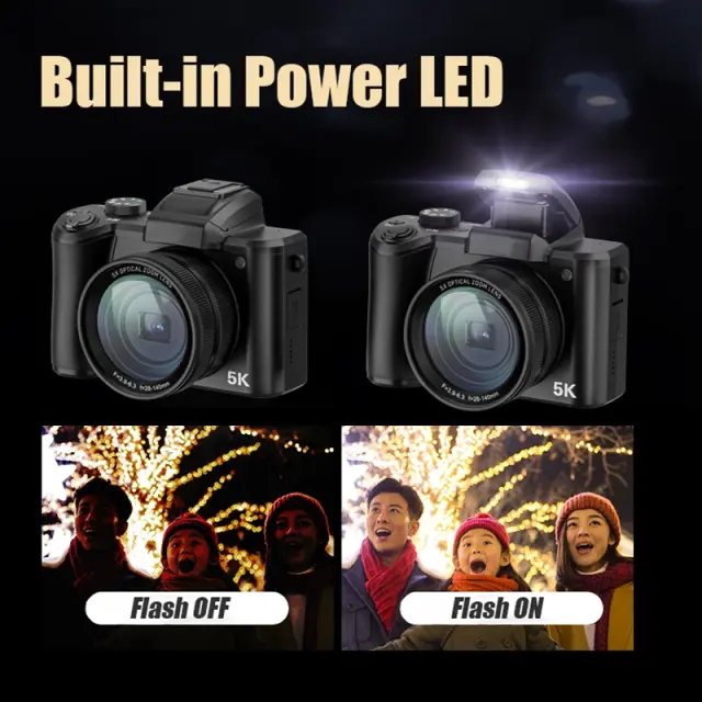 Digitalni fotoaparat 5K: V primerjavi s tradicionalnimi fotoaparati 1080p in 4K izjemno visoka ločljivost 5K poudari podrobnosti slike še jasneje in reproducira barve še bolj živo. Ujemite in posnemite najbolj vznemirljive in nepozabne trenutke z visokokakovostnimi fotografijami ali videoposnetki! Kamera je odlična tako za notranjo kot zunanjo uporabo.