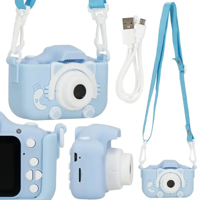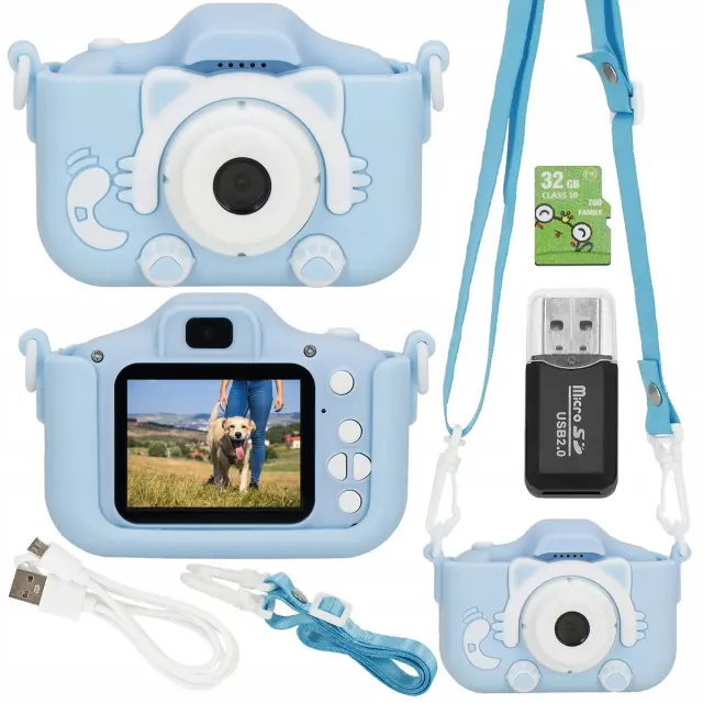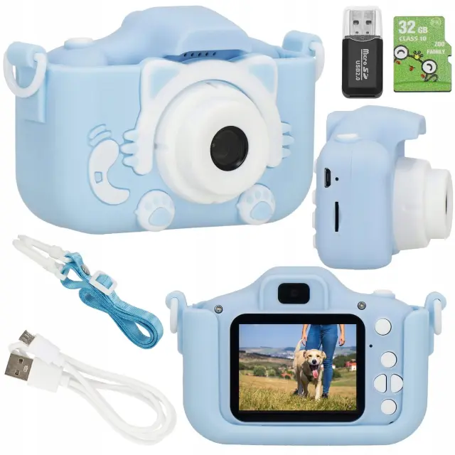 DIGITALNI FOTOAPARAT ZA OTROKE Fotografski 40Mpx 3 igrice MODRA MAČKA+KARTICA 32