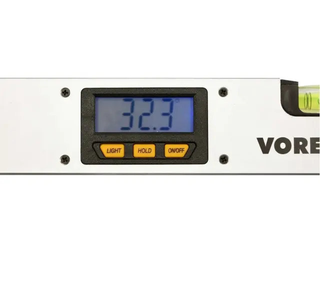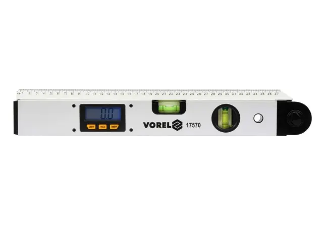Ali morate kot čim bolj pravilno izmeriti? Elektronski kotomer Vorel z vodno tehtnico se zdi v veliko pomoč pri tej dejavnosti. Zelo priročno je prikazati velikost kota na osvetljenem LCD zaslonu. Razveselila vas bo funkcija Hold za začasen prikaz izmerjene vrednosti. In seveda obstaja tudi funkcija samodejnega izklopa. Kotomer ima merilno območje od 0° do 230° z natančnostjo ± 0,1°. Kotomer Vorel je izdelan iz visokokakovostnega aluminija z dvema