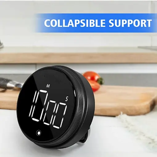 Močna magnetna absorpcija in zložljivo stojalo: Časovnik prilepite na hladilnik ali katero koli magnetno površino za lažji dostop ali pa stojalo razprite in ga postavite na mizo ali pult. Uživajte v udobju, medtem ko se osredotočate na svoje naloge.