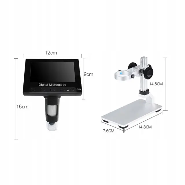 Rosfix Mikroskop DM4-Z04008 – Digitalni 4,3'''' LCD, 50–1000X, 720P, 8 LED, USB, MicroSD | Za Industrijo in Šolo