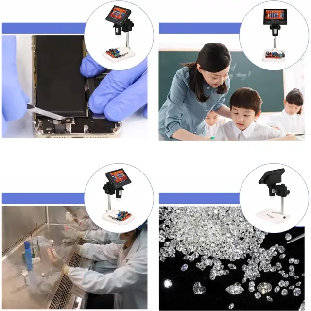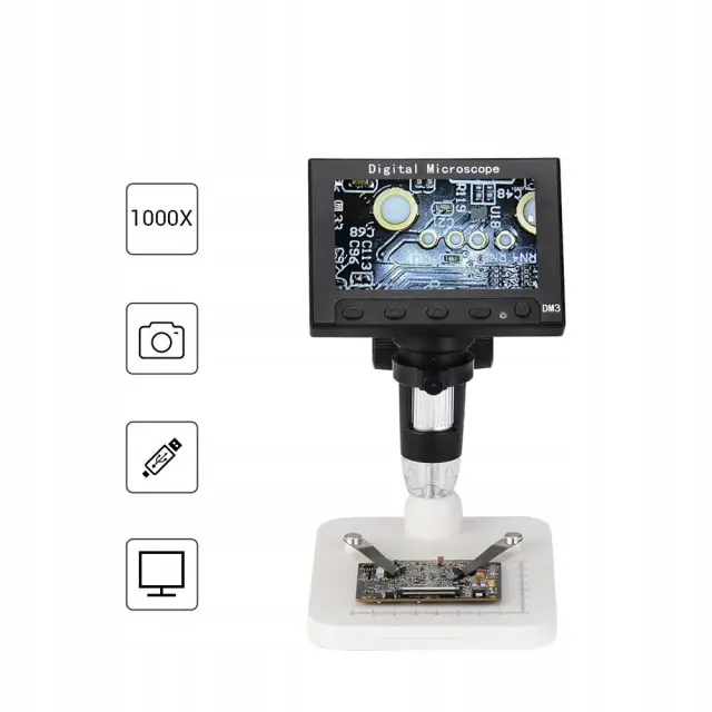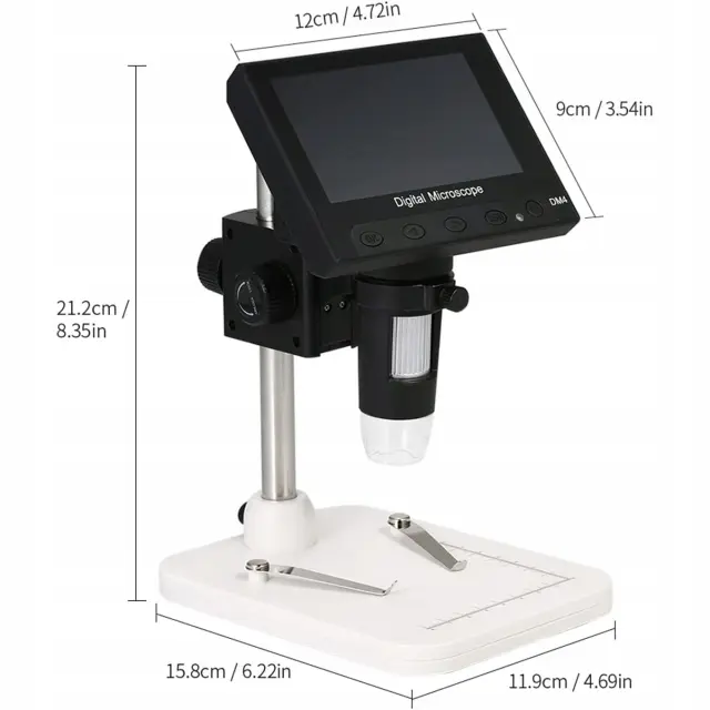Rosfix DM4-Z01B019 Digitalni Mikroskop – 4,3'''' LCD, 50–1000X, 720P, 8 LED, USB, microSD | 0–3 cm Fokus