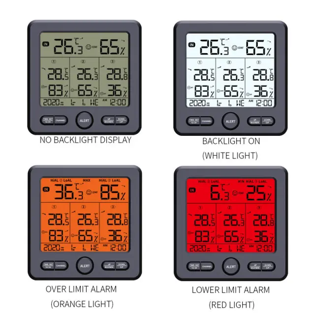 S funkcijo alarma. Ko temperatura ali vlaga presežeta nastavljeno zgornjo ali spodnjo mejno vrednost, sprejemnik pošlje ustrezen alarm.