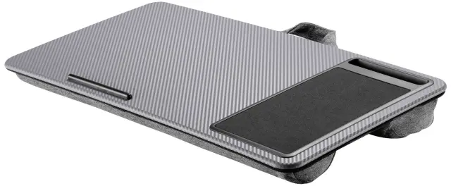 Miza za prenosni računalnik vam omogoča delo od koder koli - največja prilagodljivost. Ponuja podlogo za miško in stojalo za pametni telefon. Nosilec na spodnji strani preprečuje zdrs prenosnika tudi pri delu v nagnjenem položaju. Mehke blazine na spodnji strani nudijo udobno in stabilno oporo.Besedilo je strojno prevedeno.