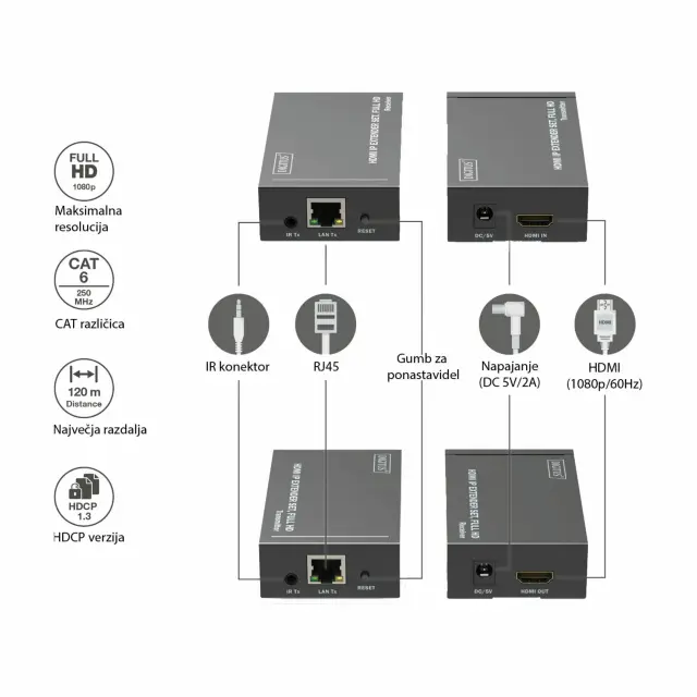 Digitus line extender HDMI+IR RJ45-RJ45 do 120m DS-55517