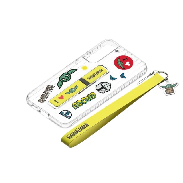 Trak za roko zagotavlja varen oprijem in zmanjšuje nevarnost padca telefona.. Z nalepkami lahko prilagodite svoj telefon. Podstavek omogoča enostavno postavitev telefona v navpični ali vodoravni položaj. Paket je zasnovan tako, da je združljiv z ohišji Samsung.