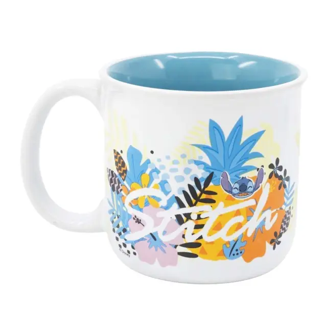 Disney, Skodelica 400 ml Stitch s tropskim motivom iz zbirke Palms v škatli, Bela / Modra