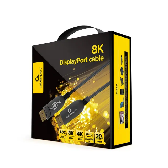 Aktivni optični kabli (AOC) uporabljajo tehnologijo optičnih vlaken za prenos digitalnega video signala. To pomeni, da se lahko signal prenese veliko dlje kot s tradicionalnim bakrenim kablom (do 100 m) in zmanjša tveganje motenj EMI/RFI. Kabli DisplayPort AOC imajo v notranjosti tudi namenske bakrene napajalne žice, tako da zunanji vir napajanja ni potreben.