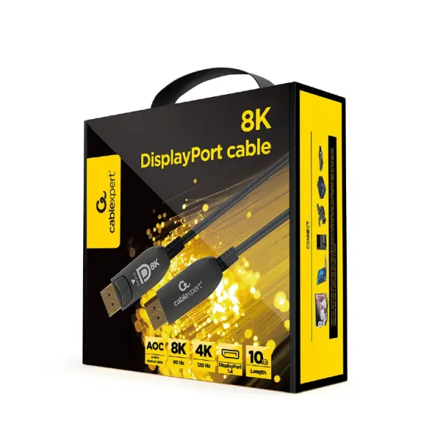 Aktivni optični kabli (AOC) uporabljajo tehnologijo optičnih vlaken za prenos digitalnega video signala. To pomeni, da se lahko signal prenese veliko dlje kot s tradicionalnim bakrenim kablom (do 100 m) in zmanjša tveganje motenj EMI/RFI. Kabli DisplayPort AOC imajo v notranjosti tudi namenske bakrene napajalne žice, tako da zunanji vir napajanja ni potreben.