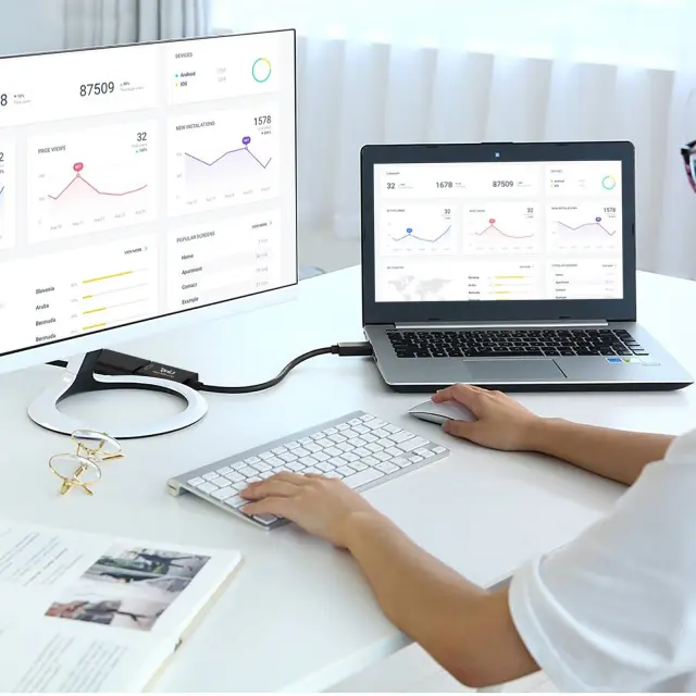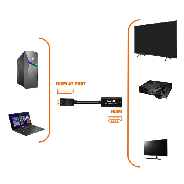 Adapter za pametni telefon, Displayport moški na HDMI ženski LinQ za oddajanje vaših datotek ali delo na dodatnem zaslonu. Displayport video adapter, ki omogoca prenos avdio in video signala v HD 3D 1920 x 1080p. Dolžina 23 cm.