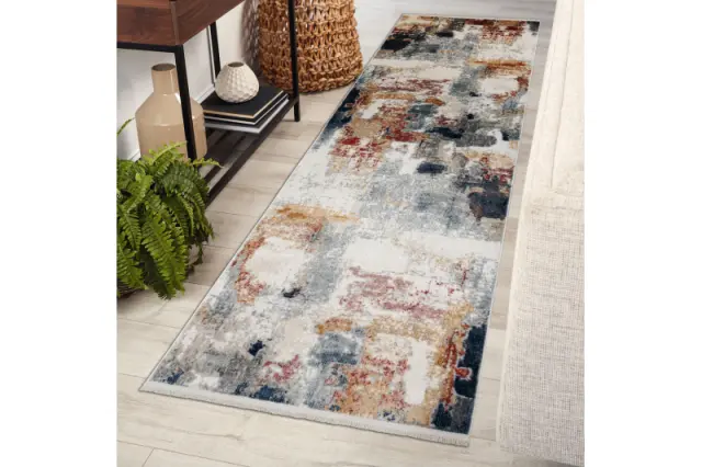 DISTIN 0144B bela / roza / prah moderna preproga, tekač - Abstrakcija, vintage, resice 80x300 cm