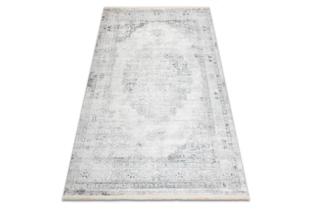 DISTIN 0201A bela / modra / svetlo zelena moderna preproga - Ornament, okvir, vintage, resice 120x170 cm