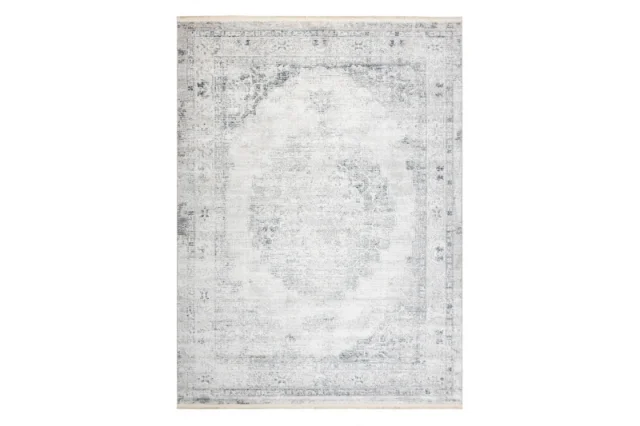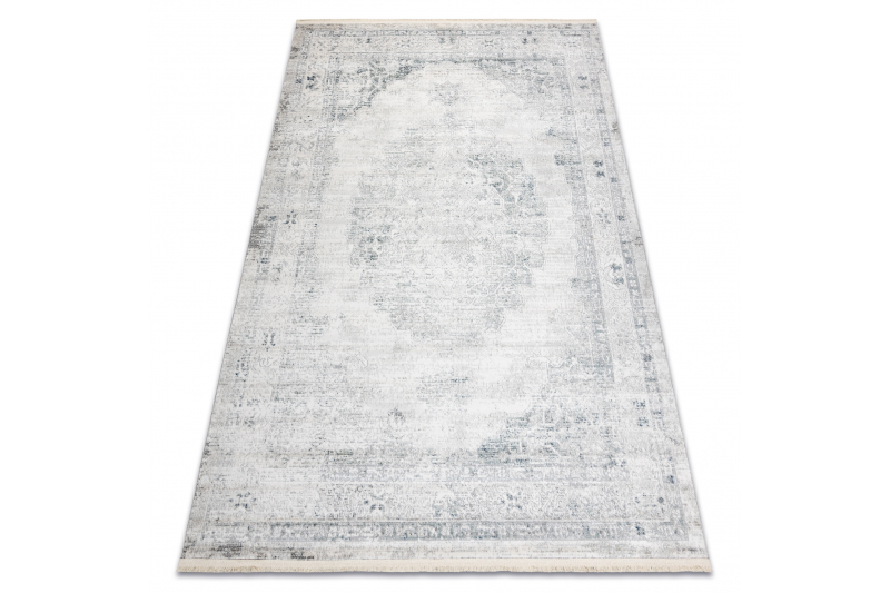 DISTIN 0201A bela / modra / svetlo zelena moderna preproga - Ornament, okvir, vintage, resice 180x270 cm