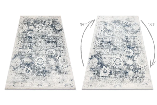 DISTIN 0822A mornarsko modra / modra / bela moderna preproga - Rozeta, vintage, resice 160x230 cm